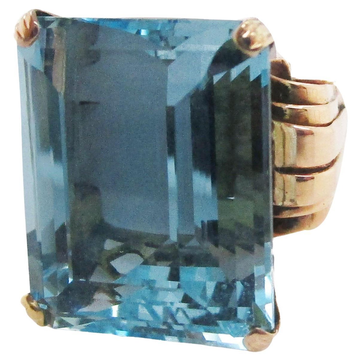 French 1960s 3 35 Carat Aquamarine Diamond 18 Karat Rose Gold Ring At 1stdibs